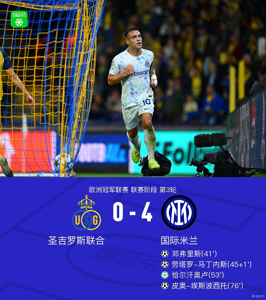 震撼来袭!北京时间10月22日,欧洲冠军联赛激战正酣,第3轮焦点战——圣吉罗斯联合VS国际米兰,一场进球盛宴等你见证!上半场,比塞克头球变线,邓弗里斯冷静补射,国米先声夺人;紧接着,皮奥妙传,劳塔罗一蹴而就,扩大战果!下半场,劳塔罗造点,恰尔汗奥卢一锤定音,博尼再献助攻,皮奥锦上添花!最终,圣吉罗斯联合0-4不敌国际米兰,国米用一场酣畅淋漓的胜利,宣告王者归来!点击即刻解锁本场比赛详细数据,揭秘每
